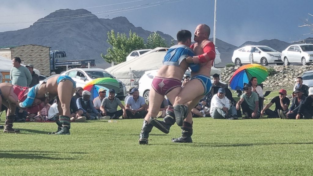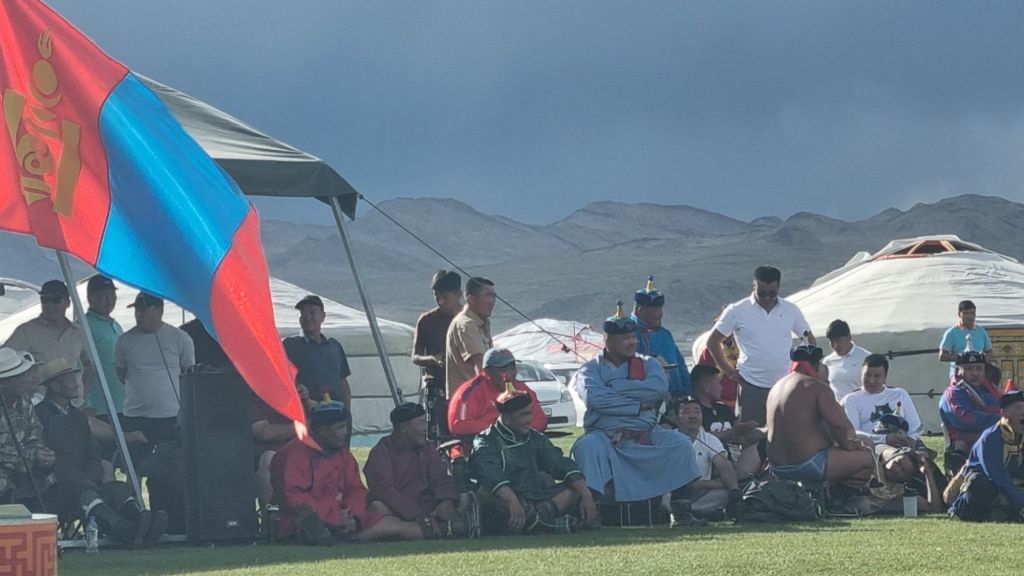 als einzige Langnasen, und dürfen absolut tourismusfrei mongolischen Ringkampf hautnah miterleben – wow!