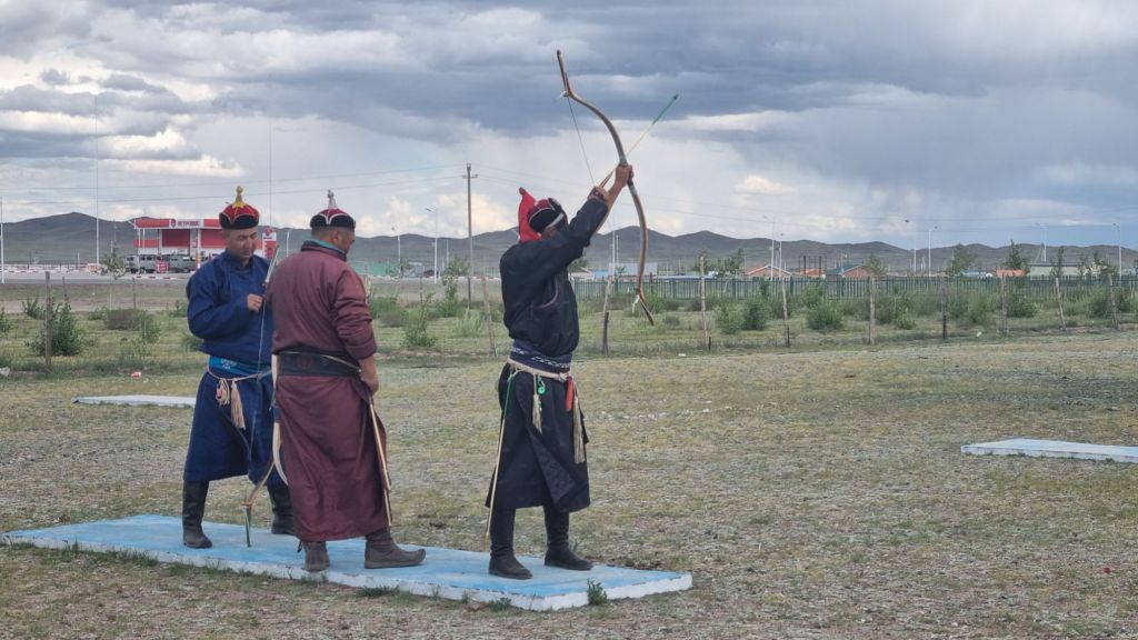Nach einer Mittagspause begeben wir uns zum zweiten Mal aufs Festgelände. Jetzt halten wir zuerst bei den Bogenschützen. Hier ist es, anders als bei den Reitern, komplett still, also volle Konzentration. Wir haben zwar von diesem Sport keine Ahnung, aber mit traditionellen Bögen und Pfeilen auf kleine, am Boden liegende Körbe von nur wenigen Zentimetern Höhe zu schießen, die sich in 75 m Entfernung befinden…und fast jedes Mal zu treffen – alle Achtung!