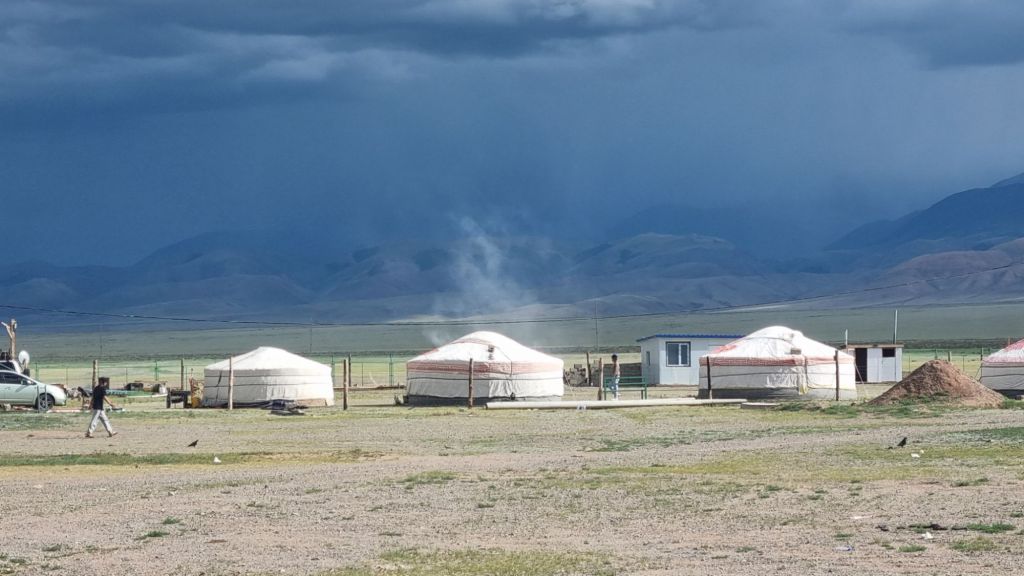 Gegen 14 Uhr erreichen wir unser Ziel Darvi und kurz vorm Ortsausgang werden wir fündig: Für 20000 T können wir neben einigen Hütten stehen, Dusche und Klobenutzung inklusive. Neben den Hütten gibt es noch einige Familien Gers, einen Supermarkt und ein Restaurant. Wir stellen unsere Stühle in den Windschatten vom Champ…der Wind ist heute schon extrem und in den nächsten Tagen soll es auch so bleiben. Das bedeutet: Unruhige Nächte! Nachdem wir so richtig durchgepustet wurden, entscheiden wir uns um und mieten uns für vier Tage die Hütte neben uns. Die ist mit 80000 T (weniger als 20 €) auch nicht teuer und garantiert ruhigen Schlaf.