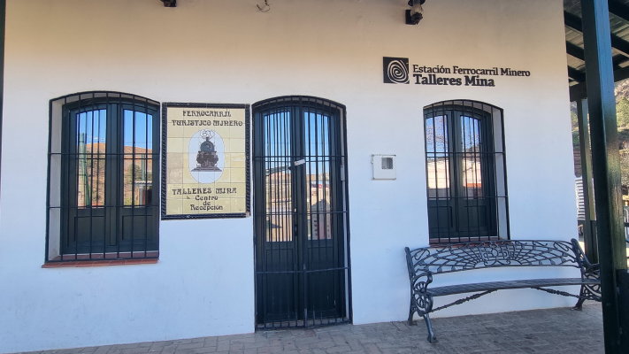 Am nächsten Morgen fahren wir dann „anstrengende“ 4 km zum Bahnhof, also der „Estacion Ferrocaril Minero“. Die Übernachtung ist auf dem Besucherparkplatz leider verboten, allerdings gibt es rund hundert Meter davor einen großzügigen und überwiegend ebenen Platz, an dem das Freistehen toleriert wird.