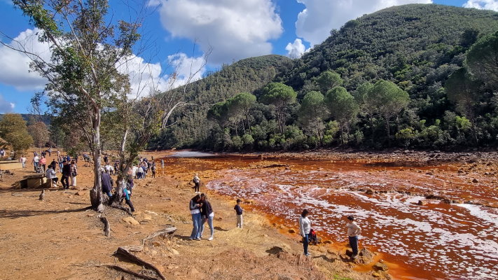 Bis dahin führt die Bahnlinie durch altes Minenabbaugebiet. Auf den ehemaligen Rangiergleisen der Minengesellschaft befindet sich nun ein Lok- und Waggonfriedhof. Den End- und Wendepunkt bildet die „Estacion de Los Frailes“, wo die Passagiere für 30 Minuten eingeladen sind, tausende von Selfies an einem Picknickplatz des Rio Tinto zu schießen, der übrigens nicht die ganze Zeit knallrot ist, sondern auch gelb, braun oder ockerfarben. Das liegt zum Glück einmal nicht an bösartiger Umweltverschmutzung, sondern an den im Wasser gelösten Mineralien.