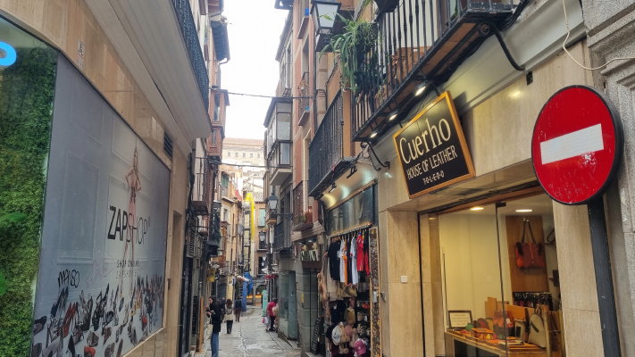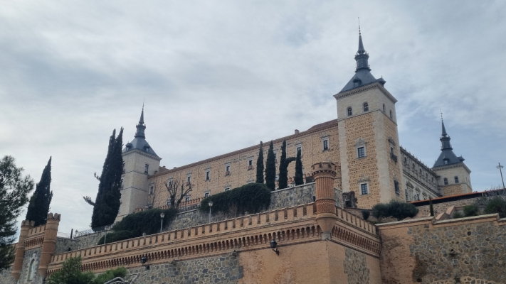 Auf der anderen Seite geht es mit ordentlich E-Unterstützung gut bergan bis zum „El Greco“-Museum, wo wir gegenüber in einem kleinen Park die Räder anschließen und von hier aus zu Fuß die Stadt unsicher machen. Toledo gehört zu den meistbesuchten Städten Spaniens und das hauptsächlich aus zwei Gründen: Die wunderschöne Altstadt und die riesige Kathedrale mit Bildern von „El Greco“ (Sohn Toledos!), Goya, Tizian, van Dyck und anderen berühmten Malern. Wir bummeln durch die schönen Gassen, setzen uns für eine Viertelstunde auf die Plaza Zocodover und gucken Leute (immer sehr interessant!), umrunden den wehrhaften Alcazar und bewundern die traumhafte Aussicht vom dortigen Mirador.