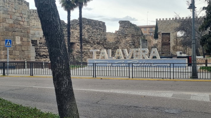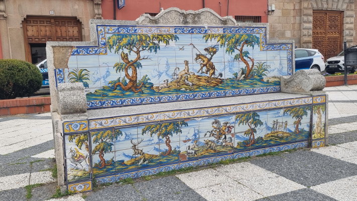 Weiter geht es nun nach Talavera de la Reina, der Fliesen- und Kachelhauptstadt Westspaniens. Nach einer größeren Shoppingtour fahren wir den offiziellen Stellplatz der Stadt an. Der Womoführer nennt den „uncharmant“, was wir als extrem diplomatisch empfinden: Am Straßenrand einer 4-spurigen Straße mit ordentlich Verkehr gelegen, neben einer Fabrikruine und gegenüber der Feuerwache – und dann auch noch schief! Egal, erstmal besuchen wir die im Reiseführer hoch gelobte Altstadt, zu der es von hier aus nur 2,5 km entfernt ist. Angeblich ist dort fast jedes Haus mit Quadratmeter großen Kachelbildwerken geschmückt und wir haben uns, wie empfohlen, durch die Altstadt treiben lassen.