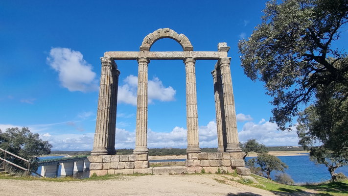 Nun geht es auf die A 5 bis zur Abfahrt 171 und von da auf der EX-118 an Hunderten von Störchen vorbei über Peraleda zum Parkplatz am Templo Los Mármoles Augustobriga (was für’n Name!) am Stausee von Valdecanas.