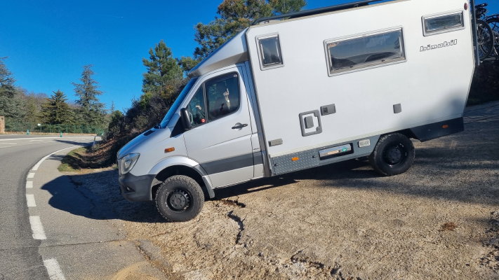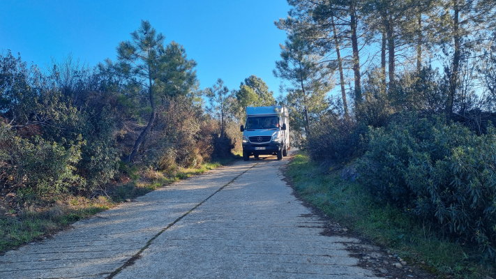Es geht kurvenreich durch Schluchten und an Berghängen entlang durch Orte wie Espadilla und Toga nach Cirat. Die bei Park-4-Night angegebenen Wegbeschreibungen zum dortigen Stellplatz erscheinen uns erst sinnvoll, nachdem wir alle anderen Zugänge abgefahren sind: Ja, wir haben nicht den ersten Zugang in den wirklich engen Ort genommen, sondern den zweiten. Hier versperrt eine Baustelle den Weg. Also rückwärts rund einen Kilometer zurück und doch den ersten Zugang wählen. Schon stehen wir an der anderen Seite der Baustelle und kommen wieder nicht weiter. Zum Glück ist Exe schlank und kurz genug und wir schaffen ein Wendemanöver mit tatkräftiger Unterstützung eines Baggerführers. Kathrin erfährt inzwischen noch von einem anderen Bauarbeiter, dass die richtige Zufahrt noch einmal mehr als 500 Meter weiter entlang der Straße zu finden ist. Die ist zwar ziemlich steil, aber so etwas ist für Exe ja nun gar kein Problem.