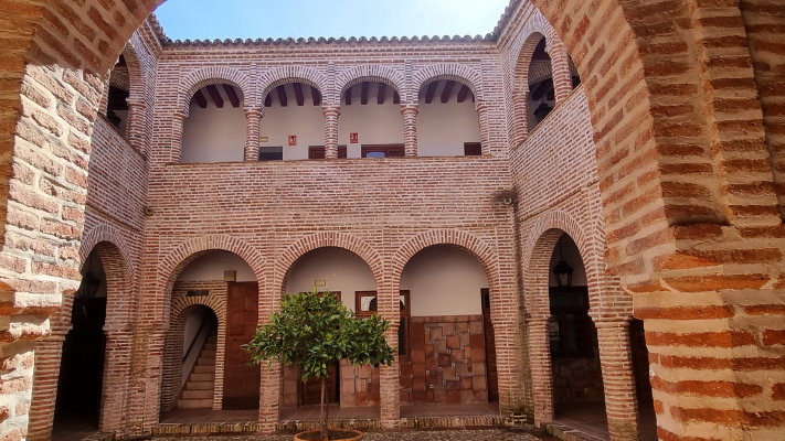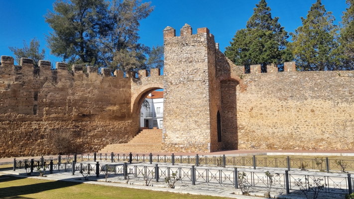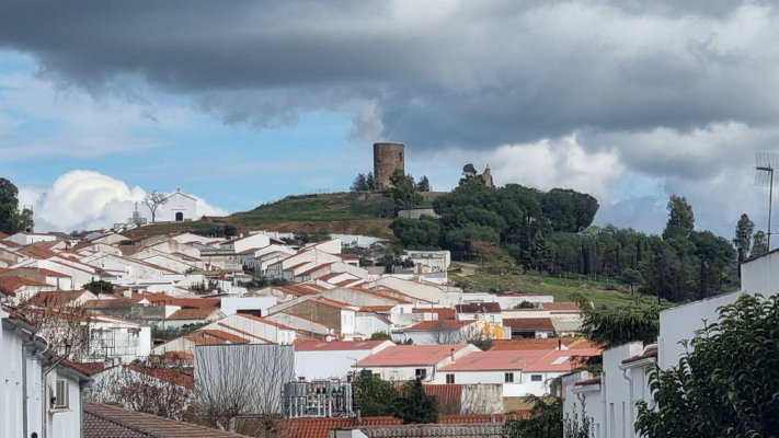 Leider stehen wir vor einem verschlossenen, martialischen Eisentor. Einlass wird ganz modern nur über eine App gewährt. Also QR-Code scannen und schon wird uns ein Stellplatz angeboten – allerdings nur für das ganze Wochenende und heute ist gerade einmal Donnerstag! So lange wollen wir denn doch nicht bleiben! Weshalb man nicht für einen Tag buchen kann, bleibt uns leider verborgen, denn vom Tor aus kann man die Plätze nicht einmal sehen – vielleicht ist ja alles ausgebucht? So fahren wir zurück nach Llerena und dort auf den städtischen Stellplatz, der sogar kostenfrei Strom bereit hält, wer so etwas denn braucht.